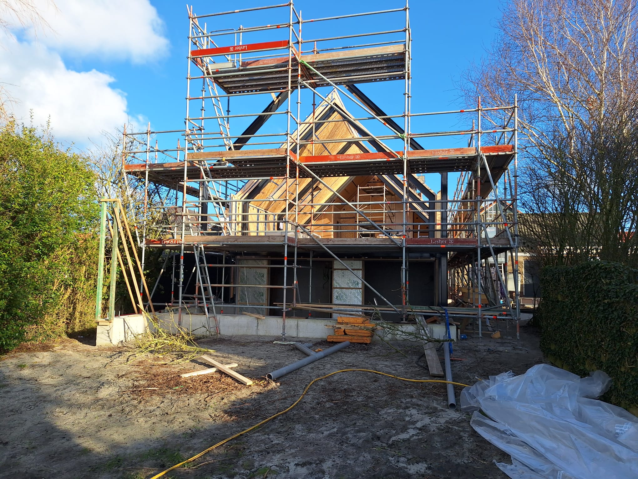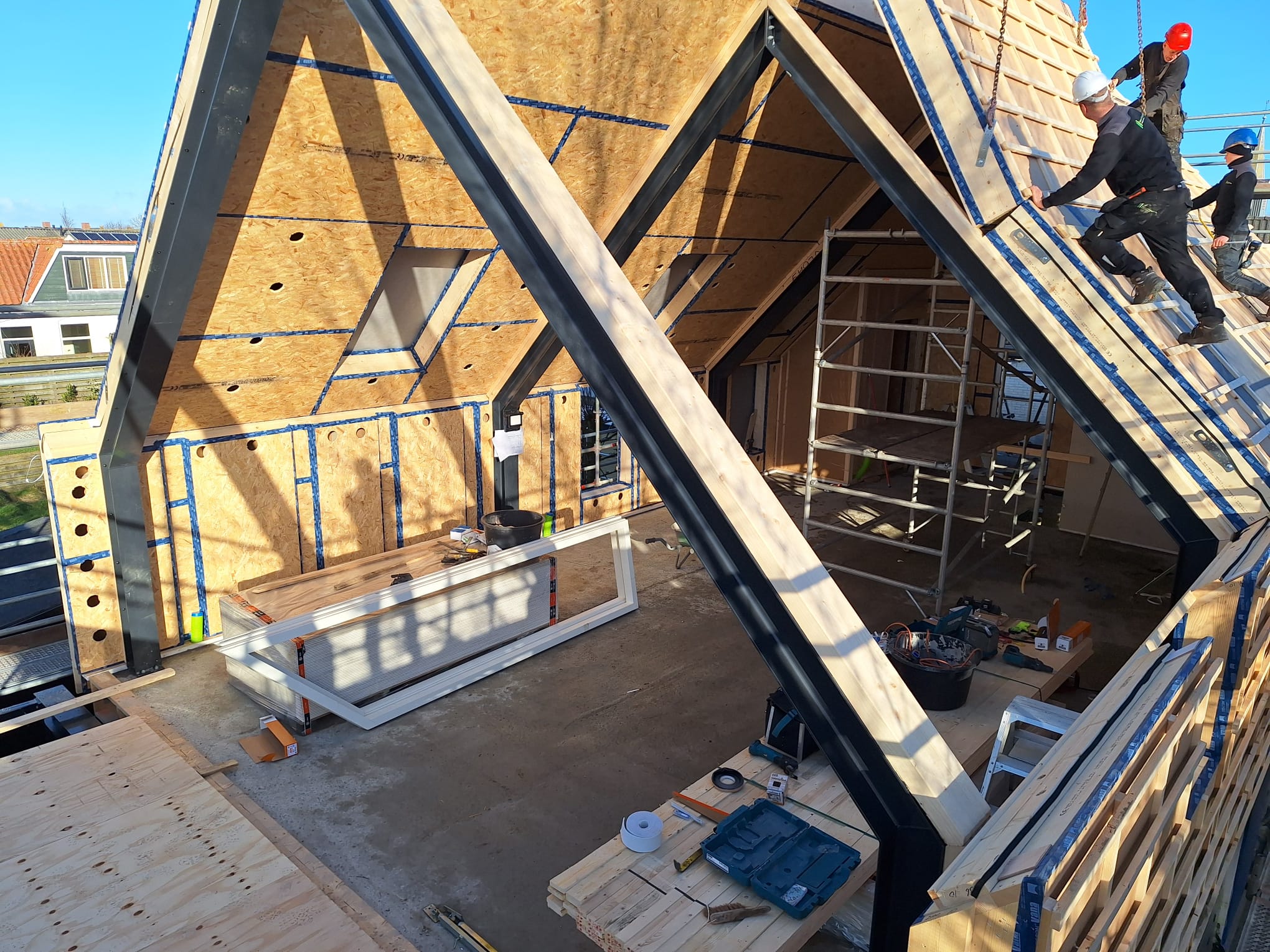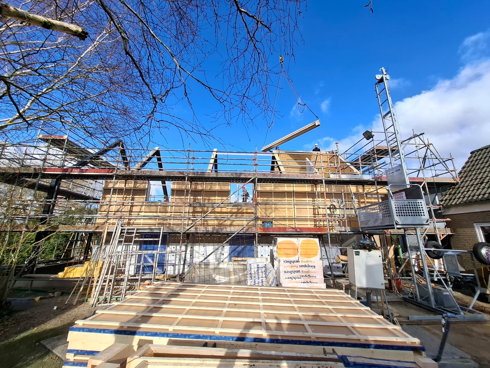 In Oudega (SWF) zijn wij momenteel druk bezig met het realiseren van een nieuwbouwwoning. Onder de gehele woning bevindt zich een kelder waarop een dampopen houtskeletbouwconstructie is geplaatst.