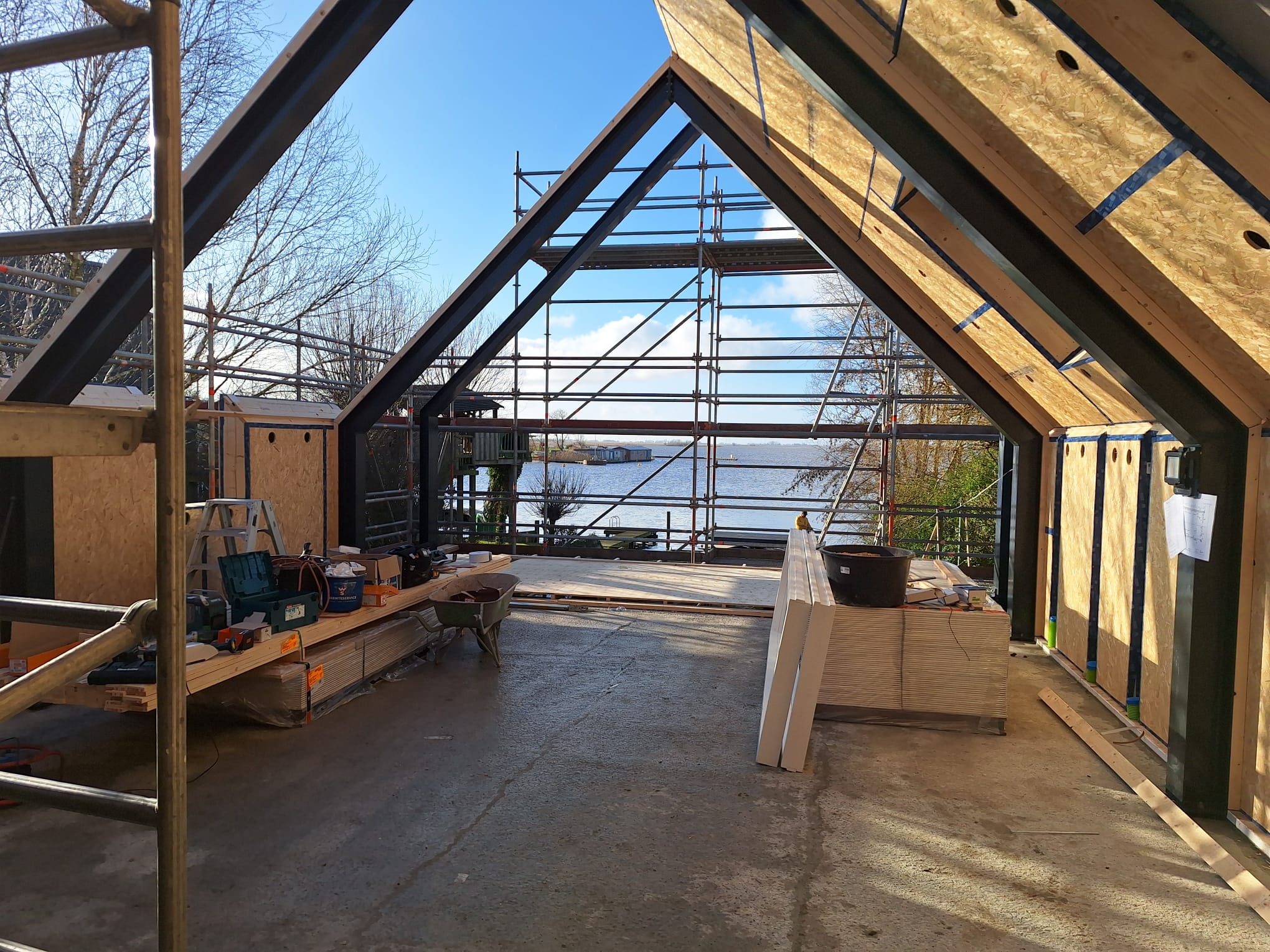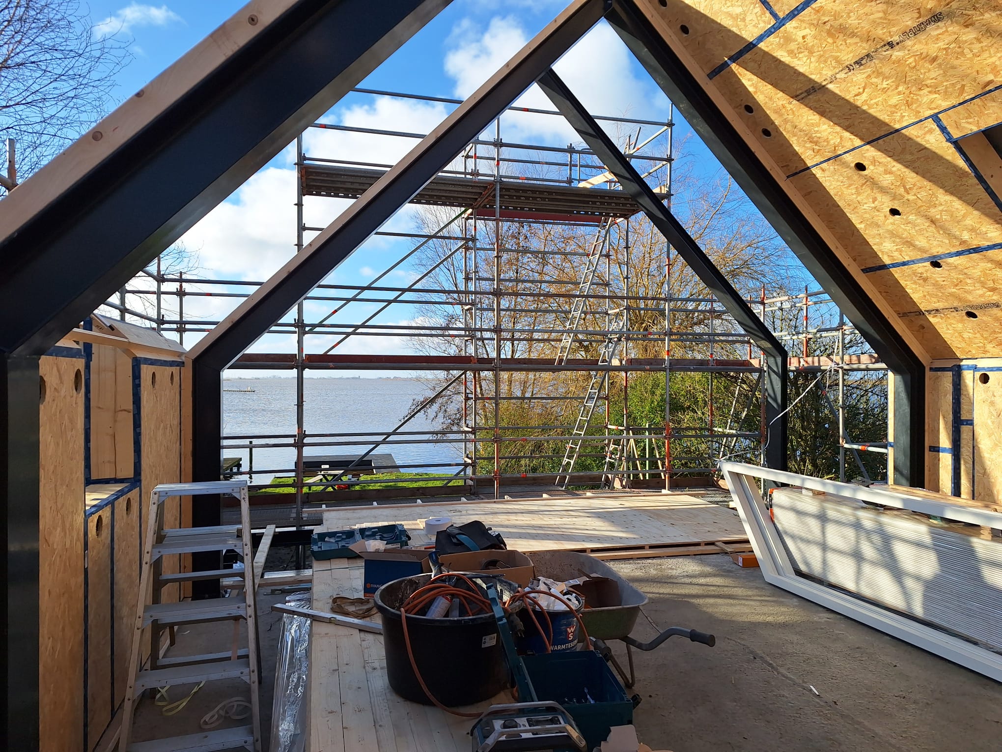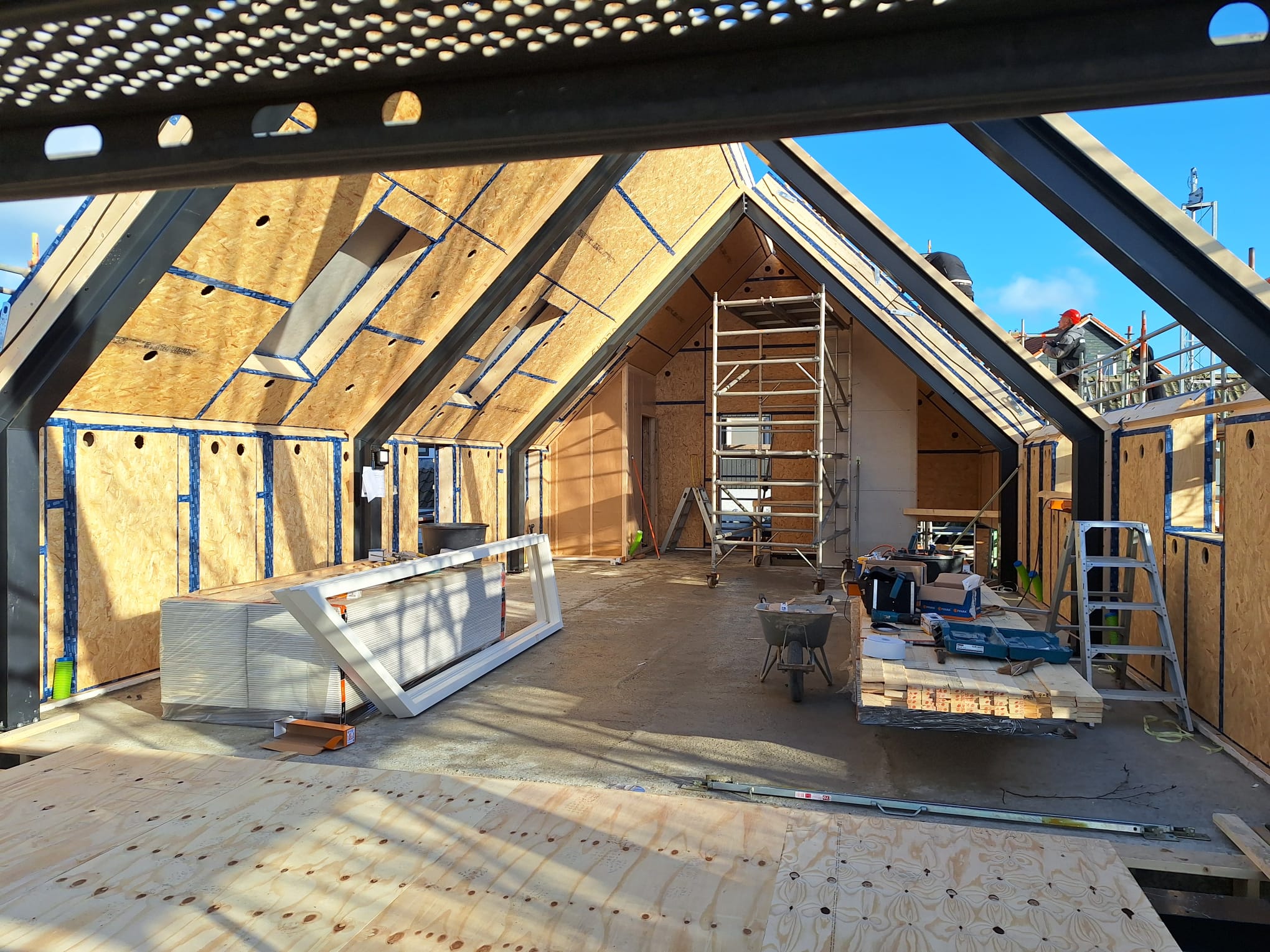 In Oudega (SWF) zijn wij momenteel druk bezig met het realiseren van een nieuwbouwwoning. Onder de gehele woning bevindt zich een kelder waarop een dampopen houtskeletbouwconstructie is geplaatst.